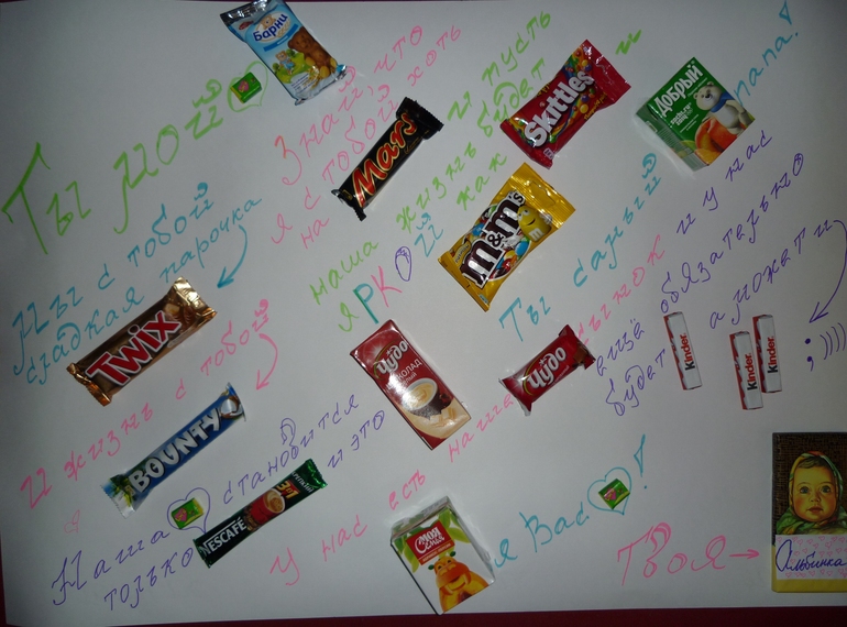 День всех влюбленныхВынашивала идею давно, подготовила текст, сладости. Оформление заняло 10 минут, вместе с участием сына):