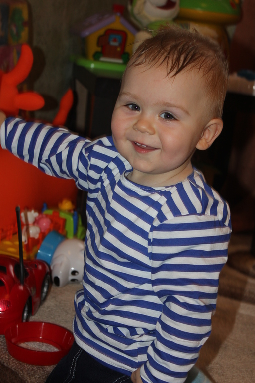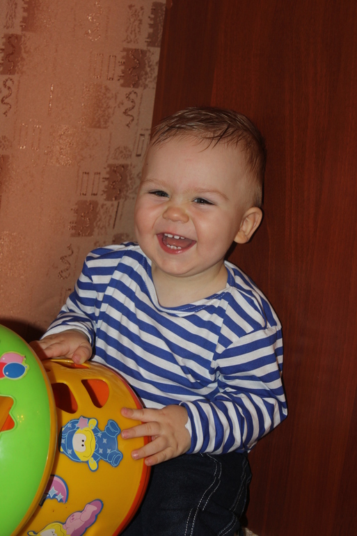 Когда папочка приехал с работы, то принес Темику подарочек, небольшой. Наш любимый гелевый шарик. Сколько он с ним играет... Восторг дикий...