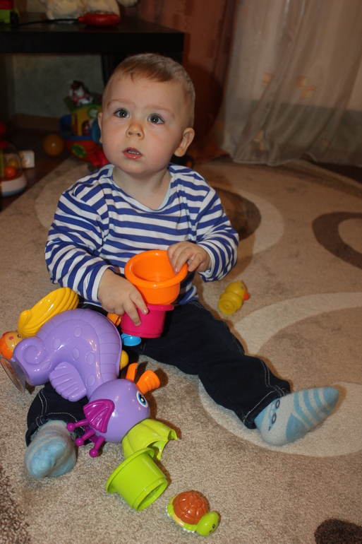 Темочка тоже получил подарочки.... Будем мы в ближайшем будущем рисовать пальчиковыми красками, а с морским конечком купались уже вчера....