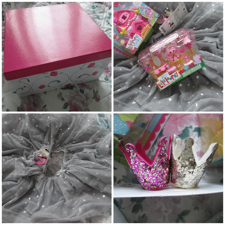 Пышная юбочка, заколки-короны и куклы-принцессы:))))(еще будет детская косметика для принцесс: тени, румяна, блеск для губ, чтобы мои не трогала!:)) не знаю как связать папины подарки с поиском сокровищ......:))))) но что-нибудь придумаю:))))