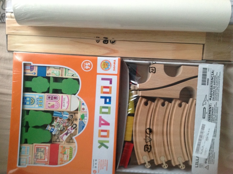 Деревянную железную дорогу в виде восьмерки как раз!:)))) и целый город!:))) а также бумагу в рулоне с держателем.... Так и вижу как она разматывает и разрисовывает весь рулон одним махом.....:)))) придется чем-то отвлекать:)))))))