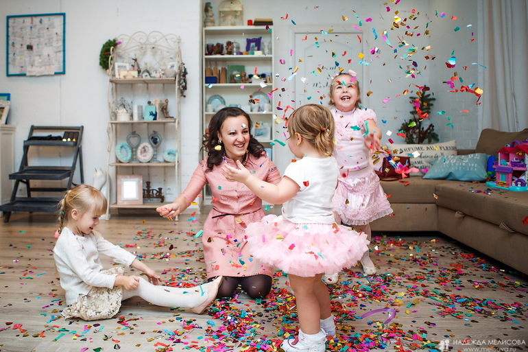 Да в веселой затеи купили обычные хлопушки с конфетти,проткнули их штук 12, высыпали конфетти в пакетик и просто для фото кидали их на фотографирующихся) А потом дети уже сами баловались с ними и возились в этом конфетти. Просто Евасик боится когда хлопушки взрываются)