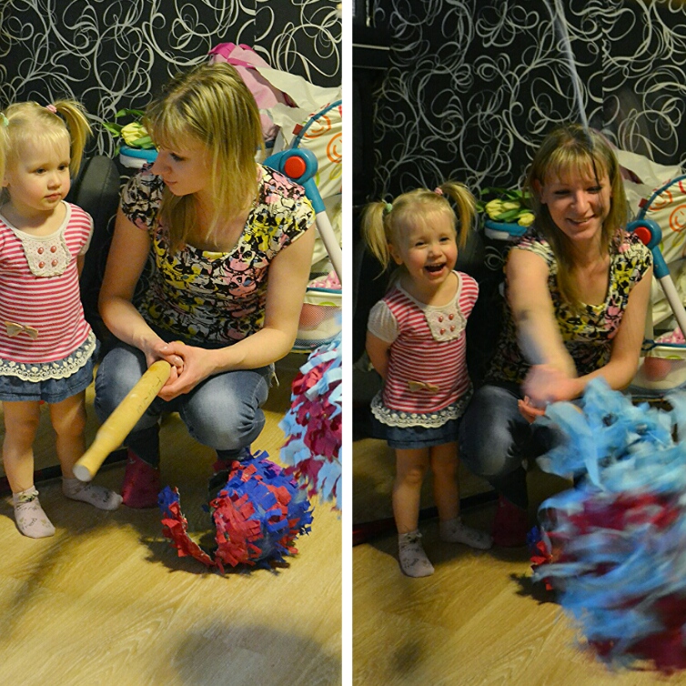 больше всех радовался брат)хоть наклейки и конфеты не забрал)было два слоя и он как самый старший и самый сильный бил 3 минуты,дети по 5-10...надо меньше клея наверно))
