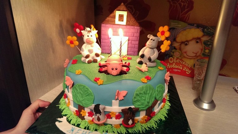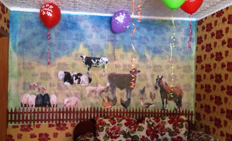 Как здорово!) И главное уникально) Еще не встречала ДР в такой тематике)))) Подскажите пожалуйста, что это такое на стене у вас с коровками, курочками...? =)