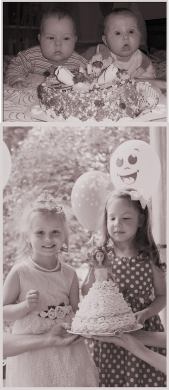 Разница между фотографиями внизу чуть меньше пяти лет, а было это как будто вчера!!! Соня по-прежнему вся в эмоциях, а Анютка строго контролирует, что подают к столу!!!