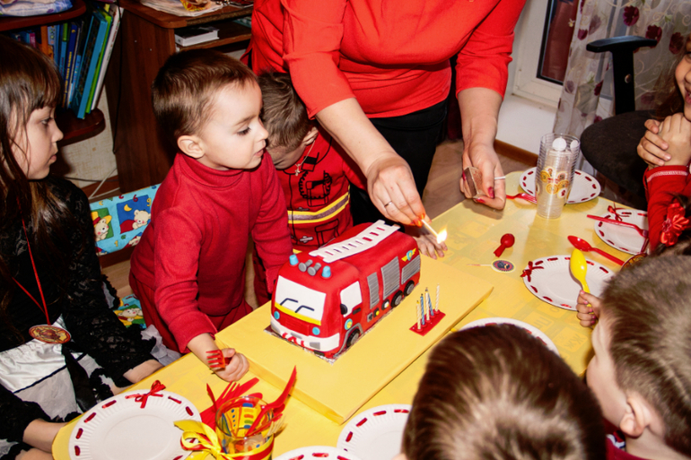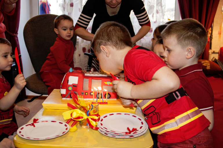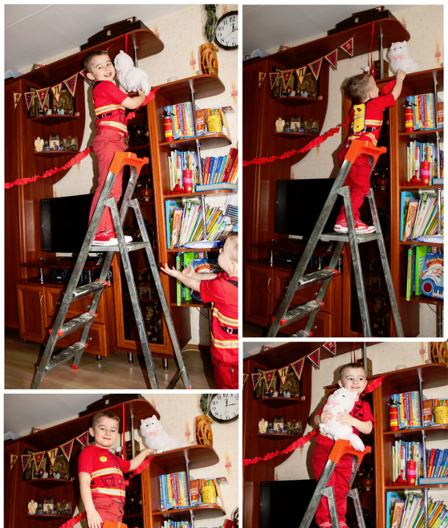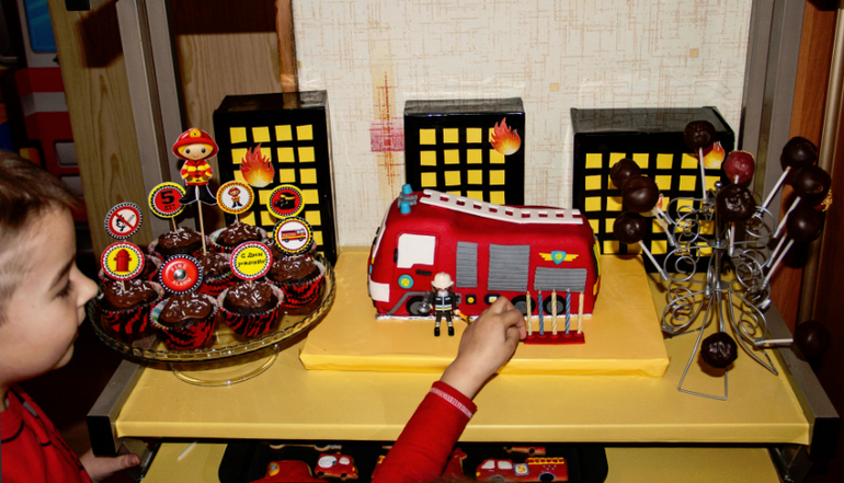 Тема пожарной вечеринки висела у нас долго... Еще в прошлом году на 4-х летие подумывали, но выбрали Груффало, рассудив что и повзрослевшим детям интересно играть в пожарных, им легче "сдавать нормативы" на звание юного пожарного, а из Груффало уже вырастем. Сынки давно увлекались пожарным делом... Еще в три Вовкиных года тетя Оксана подарила нам костюм пожарного... А уж сколько подаренных в доме пожарных машинок, конструкторов на эту тематику... И дедушка наш по пожарной охране работает... Так что сомнений в выбранной теме не было... Обоим сыночкам это интересно... У нас в стране эта тематика для детских ДР не популярна, а вот заграницей очень... Сколько там всего продают по теме: и сервировка для стола, и игры, и даже формочки для печений... всё в стиле пожарных... Но доставка дорогая, да еще с этим курсом доллара... Короче ничего не закажешь... Зато идеи с иностранных сайтов подчерпнуть можно...