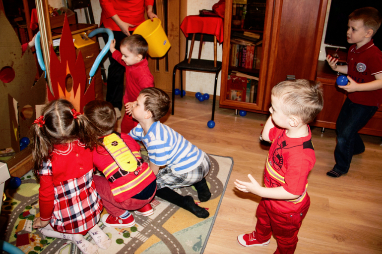 Это тоже было очень весело. Дети менялись местами, все кто хотел успели побывать и пожарными и огоньком )))