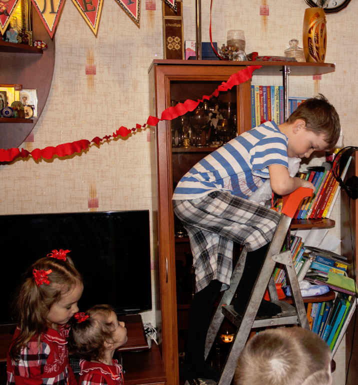 Как всегда не хватило времени. Никогда не планируйте в день празднования незнакомое, не проверенное лично вами и не попробованное сделать заранее дело... Пусть оно и кажется вам простым как три копейки... Я вот посмотрела в инете мастерклассы "как сделать шар-сюрприз", подумала "да легко", а потом как утром перед приходом гостей начала делать, как увидела в комментариях к МК, что это от 2-х до 5-ти часов занимает... но уже отступать поздно было... В итоге кухню не успела убрать... Всё кинула грязным... Перед гостями неудобно, но шар сделала ( с каким трудом, шарики пропихивала с крахмалом вместо талька). Детям он очень понравился. Хоть не зря мучалась... Ладно, это всё мелочи, начнём сначала...