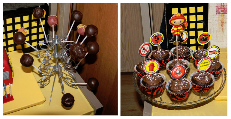 Кейкопопсы как всегда делала из юбилейного печенья (муж говорит что самое вкусное всегда на столе). Хотела сделать в красной шоколадной глазури с мелкими золотистыми шариками посыпкой... Но даже хороший гелевый краситель не победил белый шоколад, он из розового стал сразу бордовым... Посыпка тоже оказалась невкусная и я покрыла их просто шоколадом. Хотела потом украсить под огонь, но не успела и не хотелось уже столько красителей на детский стол. А подставка под кейкопопсы меня вообще разочаровала... Не самая удобная...
