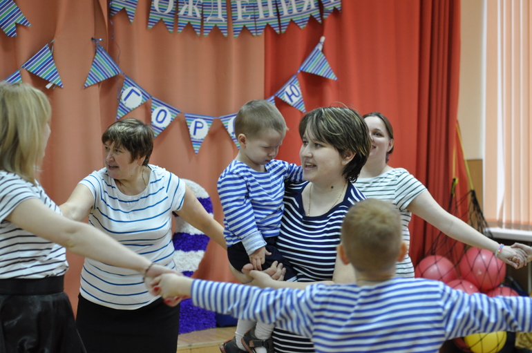 Сыночка перед началом праздника разбудили и он был не в духе, но нам немного удалось повадить хоровод