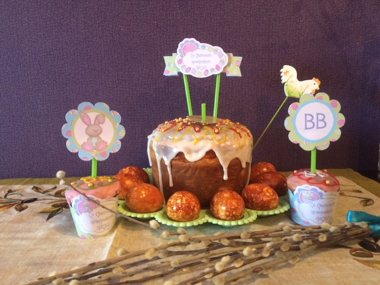 Религиозные праздникиИ мы тоже готовимся к светлому празднику. Вчера был день крашенок. Как всегда мы красили яйца луковой шелухой, увы в этом году Пасха ранняя и найти цветки мать и мачехи нам не удалось, поэтому мы доработали под себя рецепт мраморных яиц. Делали так: шелуху рвем на маленькие кусочки, мочим яйцо, обваливаем в шелухе и обворачиваем в марлю, ну или капроновую колготку (носок, гольф). И варим яйца в ней до готовности. Чем дольше варишь, тем цвет будет насыщеннее. По рецепту в конце в эти яйца добавляется зеленка. Но это нам не понравилось и мы добавили ... Чай каркаде :))))) не поверите то ли чай такой эффект дал, то ли все такие в шелухе они так неравномерно окрасились, но получились интересные узоры. Больше ничего добавлять мы не стали. В следующем году видимо мы будем брать различные красители, чтоб сыну было интересно и он экспериментировал сам, а пока получилось у нас так. А еще мы делали украшение на пасхальный стол. Папка наш принес нам огромные ветки (видимо ивы) а мы с сыном нарисовали яйца доя украшения. Получилось вот такое дерево пасхальное у нас ;)))) а самое главное сынок остался доволен процессом ;) ну и куличи... Тут мое творчество, свн помогал месить тесто только, а доделывала их я пока сыночек днем басикал :)))) очень очень получилось вкусно, рецептик чудесный (надо сказать что куличи пеку я всего второй раз в жизни), но так как получается своими руками не получается ни на одной фабрике скажу я вам. А еще я не люблю изюм в выпечке, поэтому наши куличи с цукатами. Вот еще одно преимущество домашнего кулича. Всем творческих успехов ;)))) и наше творчество наглядно: