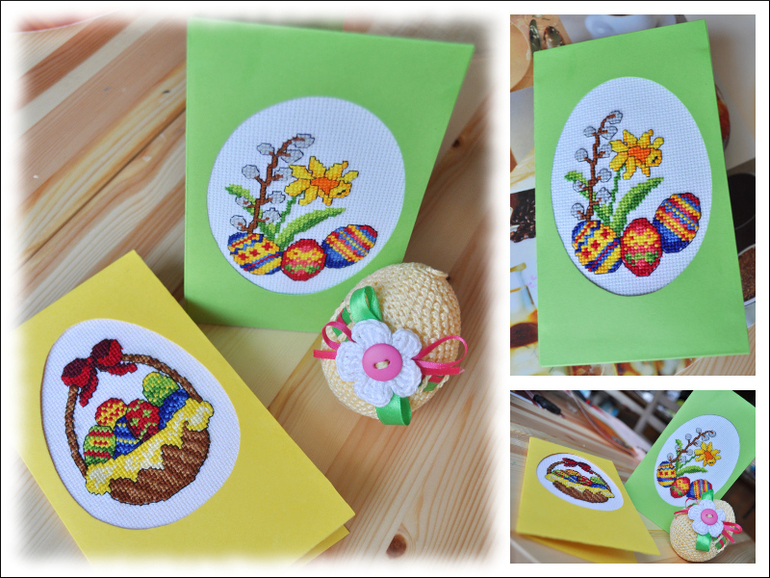 Свои первые в жизни вышивки я оформила в открытки для родственников: