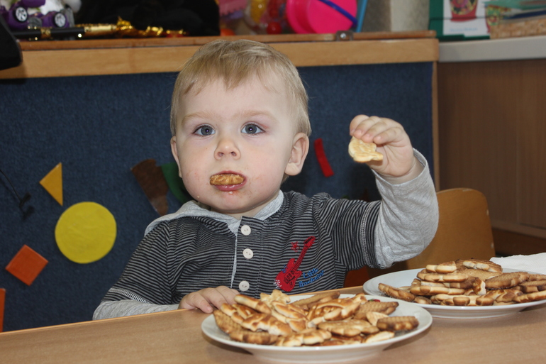 Уходили мы последними... поболтали и попили чайку с воспитателем... У Темика была огромная радость... Куча печенья...