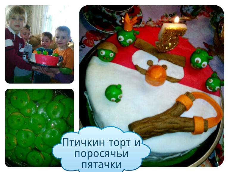 Торт я хотела сделать лучше, с множеством фигурок, но не успевала. Но Денису вроде и этот понравился. А пятачки - это печеньки.