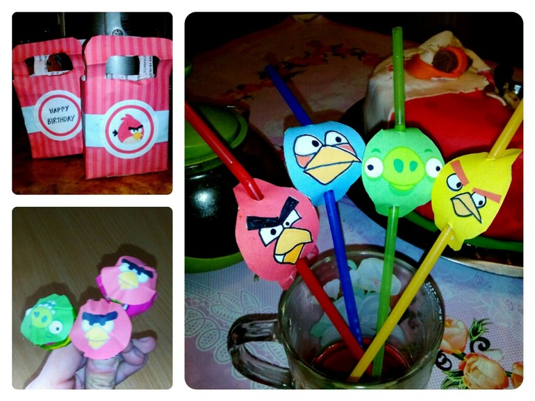 Коробочки для поп-корна, соломинки и чупа-чупсы.