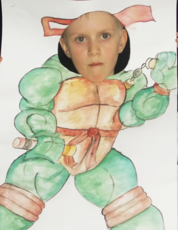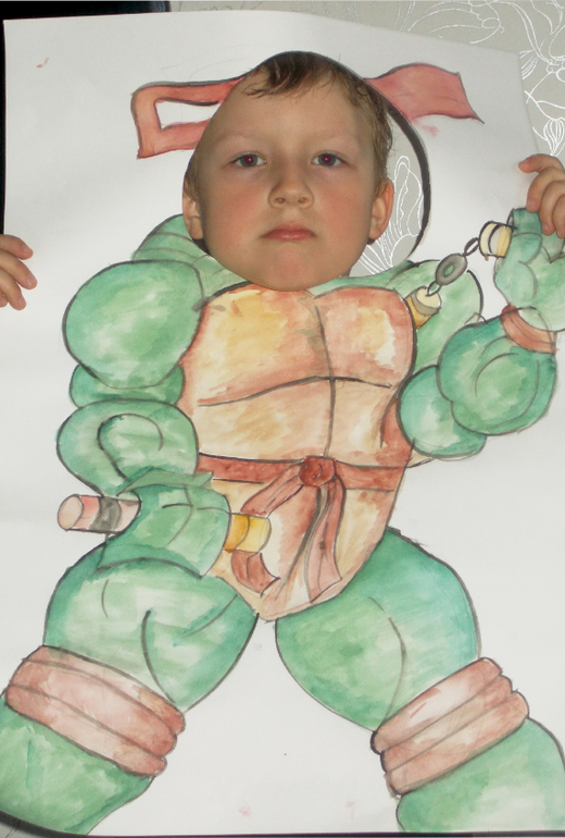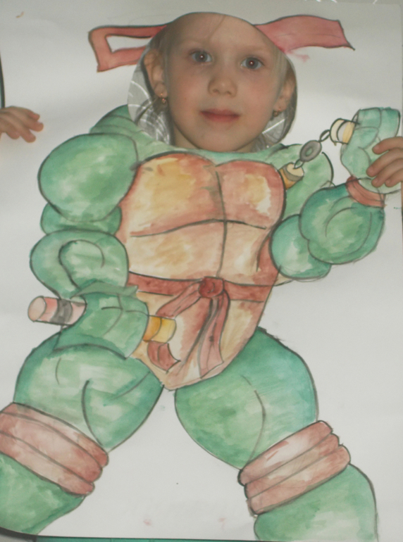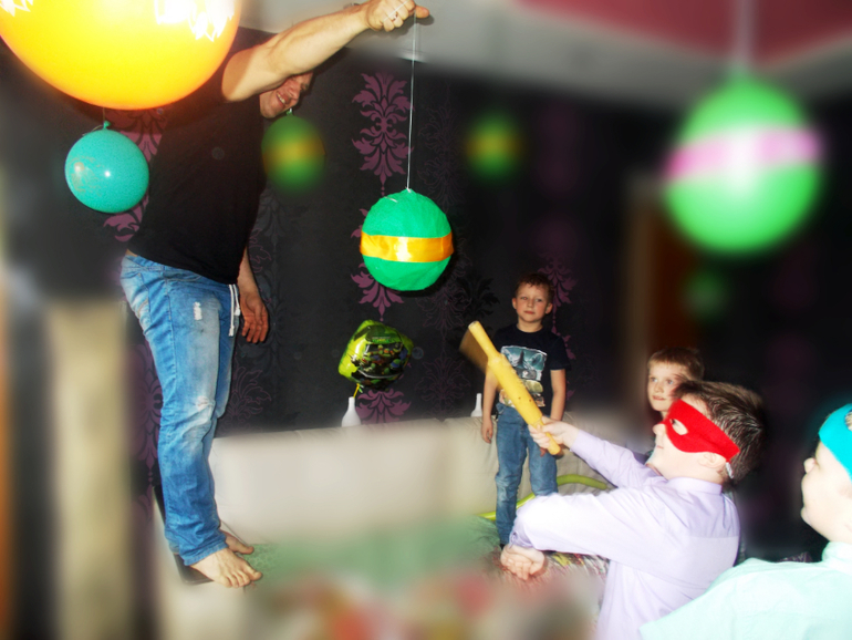 В начале праздника я, в роли учителя Сплинтера. загадывала деткам загадки шуточные,потом посвящали в черепашек и выдавала оружие в ввиде длинных шаров