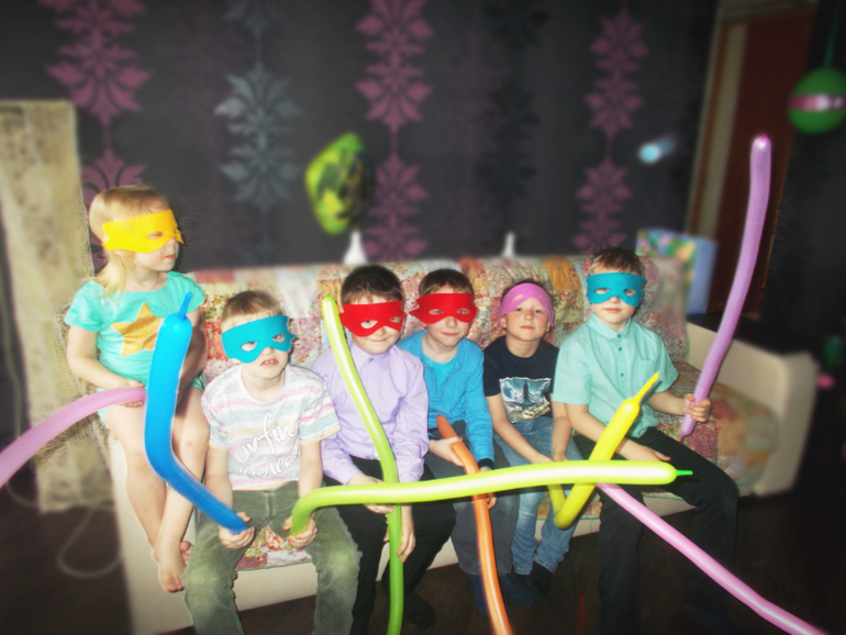 День рождения ДетскийТема нашего Дня Рождения была Черепашки Ниндзя,всю подготовку взяла на себя,весь ДР проводила сама,устала конечно,пришлось долго придумывать,покупать,украшать,шить и т.д.,но этого того стоило. Аниматоров не было.