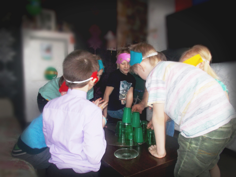 После ,делала стаканчик,наклеила на него глазки ,привязала веревочку и шарик пенопластовый и надо было попасть в стаканчик шариком,все делали по очереди,кто больше.
