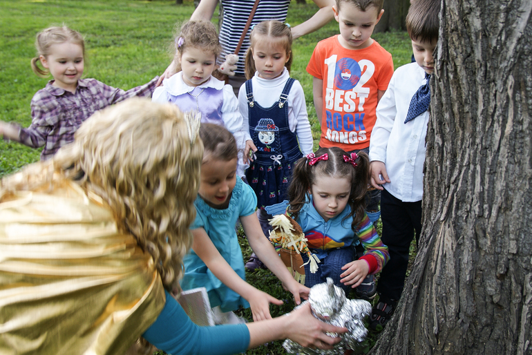 И обещает сопровождать их в Изумрудный город, где именинницу и ее друзей ждет Гудвин с волшебными дарами и подарками