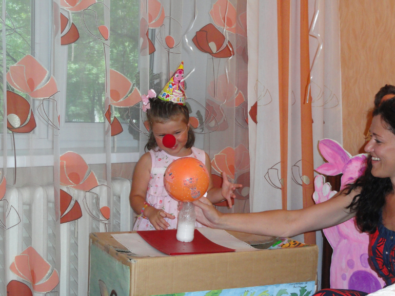 Мы показали только 3 фокуса, т.к. мне показалось уже достаточно. Прошли на ура!!!!Ну и конечно очень понравилось ей побыть клоуном)))