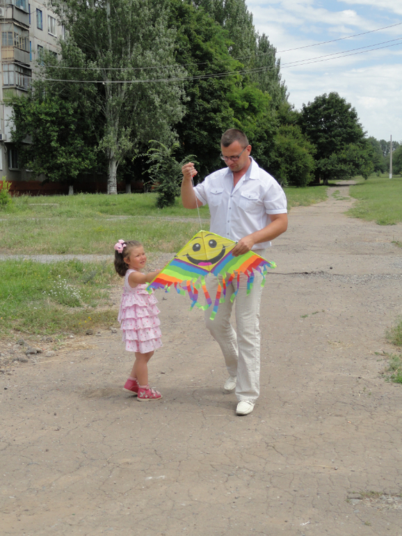 Во время прогулки еще запустили змея - подарок крестной. Это дело очень понравилось и Кате и папе))) Жаль, ветер был слабый.