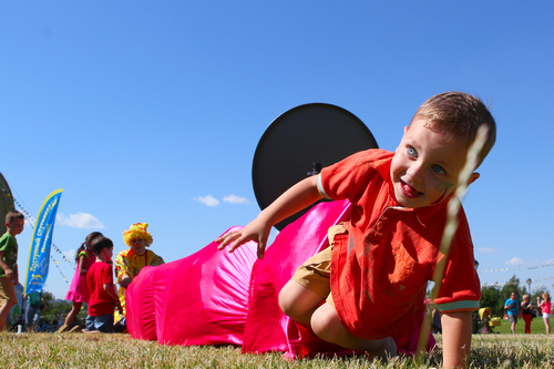 Затем все желающие заслуживали шарики сосиски! Задача пролезть в 5 - метровый туннель!