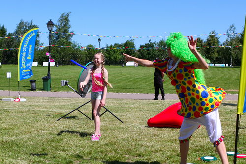 Нас пригласила компания "Kite Net" . Они попросили помочь им, поднять настроение всем гостям парка и я с моим партнером с удовольствием согласились. А развлекать нам пришлось целых 7 часов.