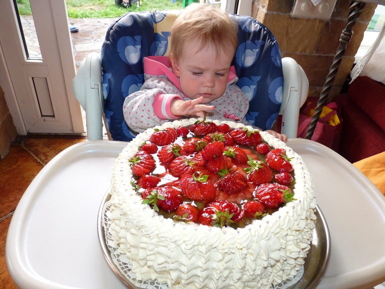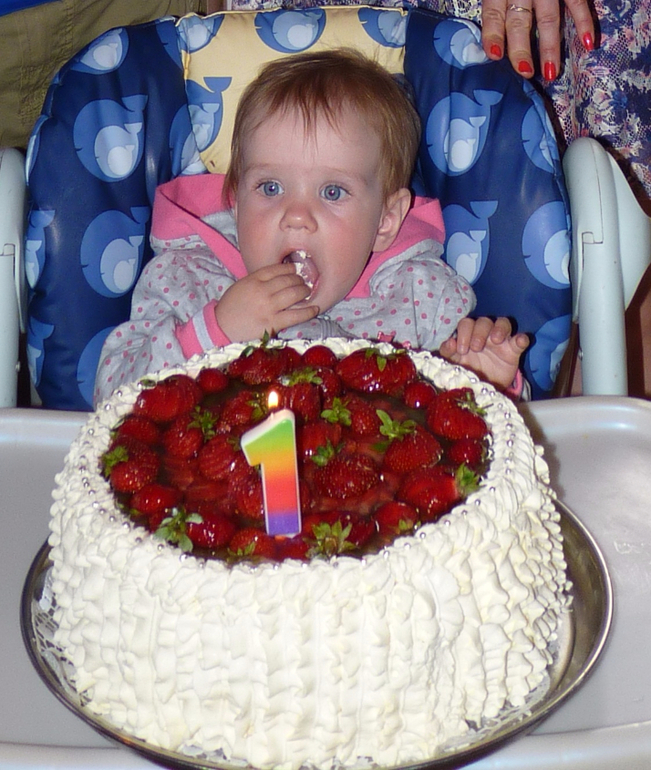 Почти все мои задумки были осуществлены. Ну во-первых пришли все, кого я приглашала. С угощениями тоже все получилось, салатики, шашлык и вкусное шампанское. Был прекрасный и вкусный торт. Конкурсы провели, поиграли в "угадай кто я?" с наклейками на лбу на детскую тематику, некоторые слова угадали быстро (бутылочка, пеленка), над некоторыми думали (роддом, грудь), на некоторые немного обиделись (горшок, соска, подгузник). Этот конкурс очень весело прошёл, все были заинтересованы, что же у них наклеено. В конкурсе на выбор предмета Верусик выбрала чеснок (здоровье), со второй попытки клубок (долгая жизнь) и с третьей монетку (процветание). Хотела её поснимать, но видео не получилось, наверное, после принятия шампанского не смогла нужную кнопку на фотике нажать))) Тут напишу что Мишаня на свое годовасие выбрал почти одновременно ключи (благосостояние) и шоколад (сладкая жизнь). Ещё гости заполняли анкеты, но писали фломастерами, а потом анкеты попали под дождь и некоторые пункты теперь не прочитать (обидно немного). Очень интересовались альбомом с фотками, в этот раз я решила просто распечатать фотки за год, вставила в красивый альбом, в итоге посмотрели все - хорошая идея и с плакатами не париться. Ещё активно использовали сделанный собственноручно набор для фотосессии, губы-усы на палочках - эта задумка удалась на пять, все с большим удовольствием фотались в губах-усах. Торт был "вершиной" вечеринки, все улюлюкали и ели с удовольствием. Хотела в конце вечера устроить запуск фонариков желаний, но гости торопились домой, дети устали, да и нашампанькались уже все прилично...запустили один фонарь, старшие детки были в восторге...на больше времени уже не было, гости приехали на общественном транспорте. Фонарики будут ждать наверное Мишкиного ДР.
