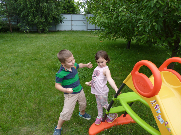 Вера ест, а Даня смотрит (ему мама не разрешает)))