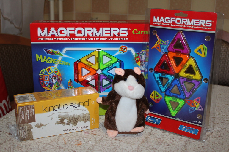 Магнитный конструктор и хомячок-повторюшка подарок от моего папочки...