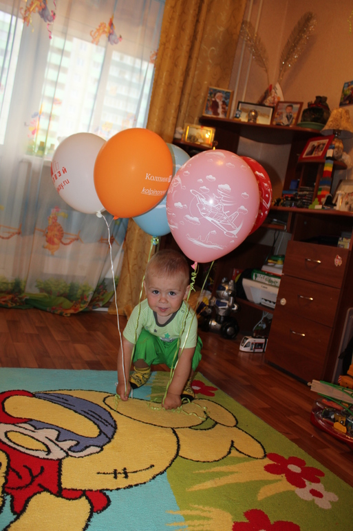 Как только мы закончили фотографироваться проснулся Темушка... и опять шарики... мы его даже переодеть не смогли... как он с ними бегал, как хохотал... Это просто невероятный восторг.