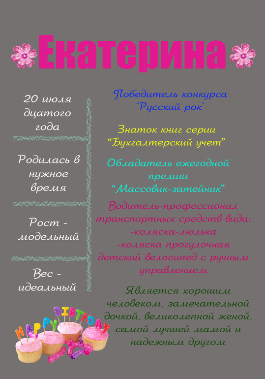 День рождения ВзрослыйНедавно у подруги был юбилей - 30 лет. Так хотелось ей что-то прикольненькое сделать. Но в силу того, что декрет сейчас в самом разгаре, создать удалось только это. Может кому-то пригодиться в качестве идеи.