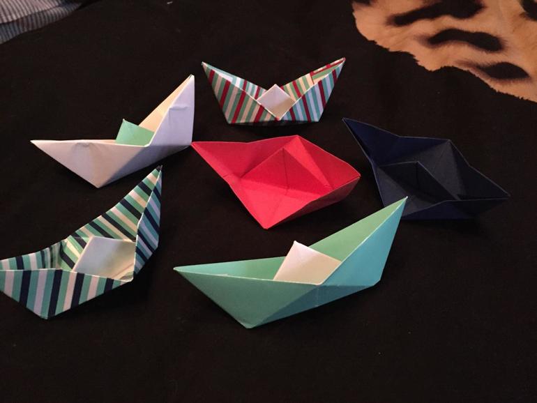 3 начала делать кораблики для гирлянды, так как у нас с цветами бумаги проблема , то распечатывала фоны для корабликов на а 4, моя ошибка была в том, что печатала не на обычной бумаге, а на глянцевой тонкой фотобумаге. цвета конечно яркие вышли, но гнется она плохо и на сгибах краска осыпается, на фото надеюсь этого потом не будет видно