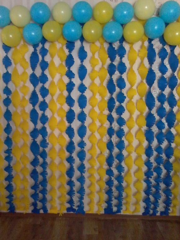 Ну вот как то так я подготовила день рождения сыночка. Еще не сфотографировала стол он тоже был в сине желтом цвете как и все оформление.Ну передышка у меня денечка 3 и сново за оформление.29 день рождения у дочки 3 годика. Ей решила в этом году оформить в стиле сафари. Практически уже все готово так немного доделать кое что осталось. Ну кому интересно поделюсь и нашим оформлением в сафари стиле.