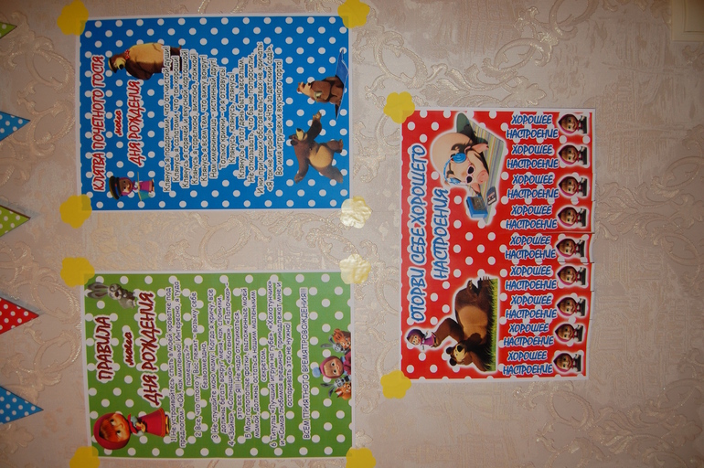 У нас был день рождения в стиле Маши и Миши. Осталась атрибутика. Если интересно утром могу скинуть фото что есть. И если понравится отправить почтой. Делала сама. Есть электронный вариант
