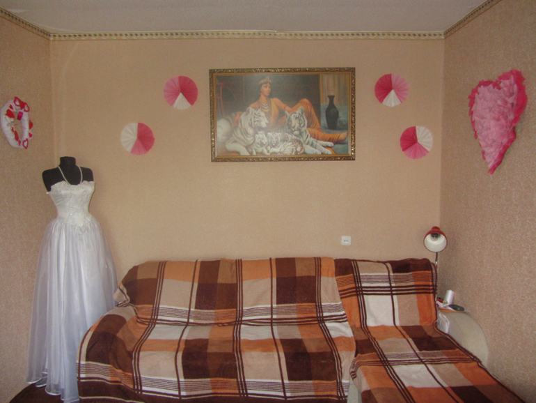 А это сама Розовая невеста!!! Жених был в розовой футболке) и подарил любимой жене 10 красных роз и одну белую.