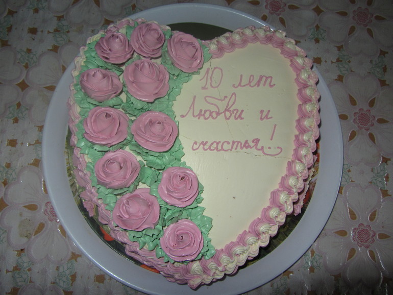 На заказ делали торт с надписью "10 лет любви и счастья"