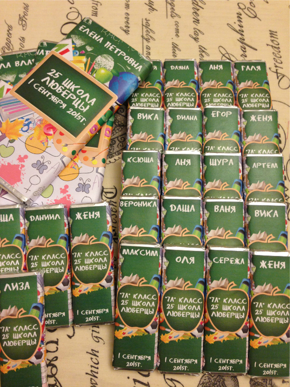 Вот такими красивыми шоколадками сынок сегодня порадовал одноклассников и любимых учителей) Большое спасибо Юлианна (Праздничная атрибутика "Puzzle") за воплощение идеи)