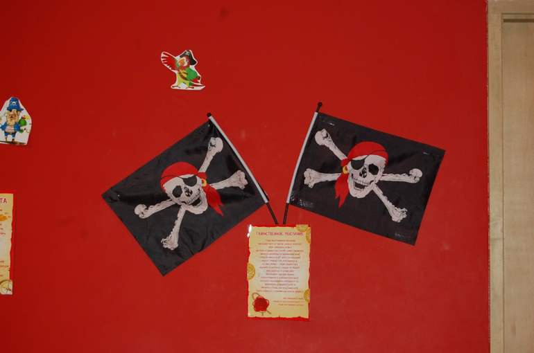 Пиратский реквизит пользовался бешеной популярностью! )) Папы вернулись в детство. Маски, мушкеты, треуголки. По просьбе пап, они останутся за кадром )