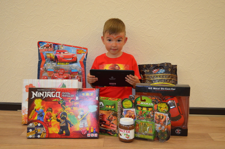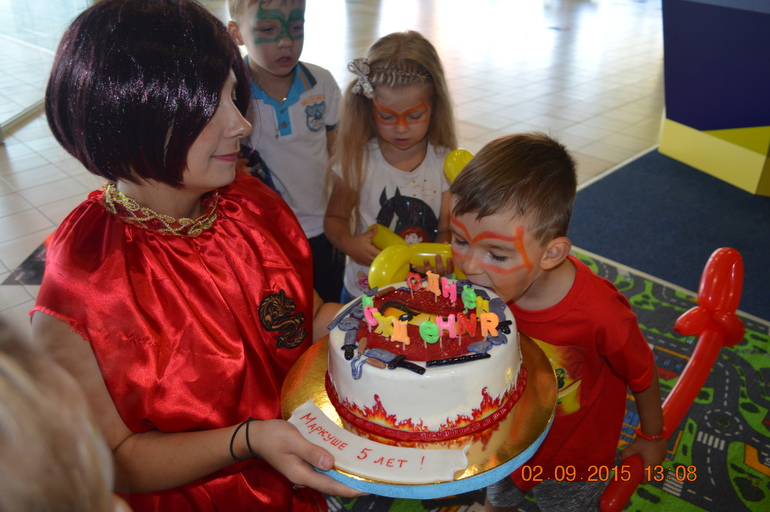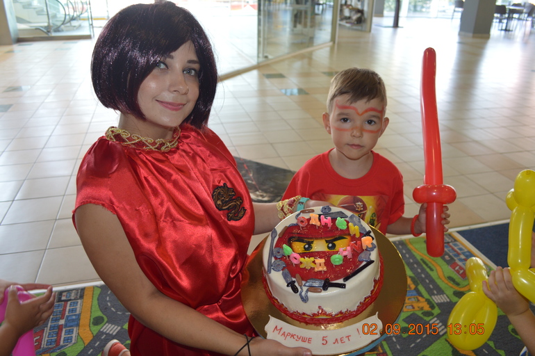 Сначала у нас был аниматор с часовой программой в стиле Lego Ninjago, были разные конкурсы, аквагрим и шарики(вернее мечи сделаные из них)