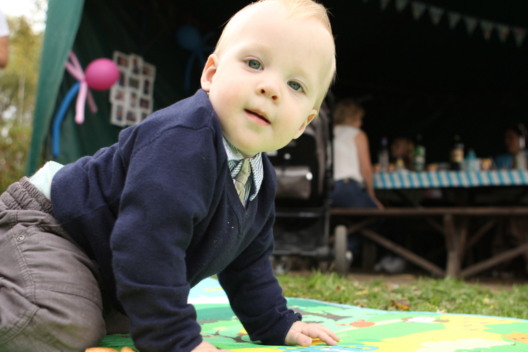 И несколько слов о Пете. Ребенка я вообще не видела-не слышала, он общался с гостями со всей своей обаятельностью. Мне очень нравится вот эта фотография, где на заднем фоне видно, насколько он старался.