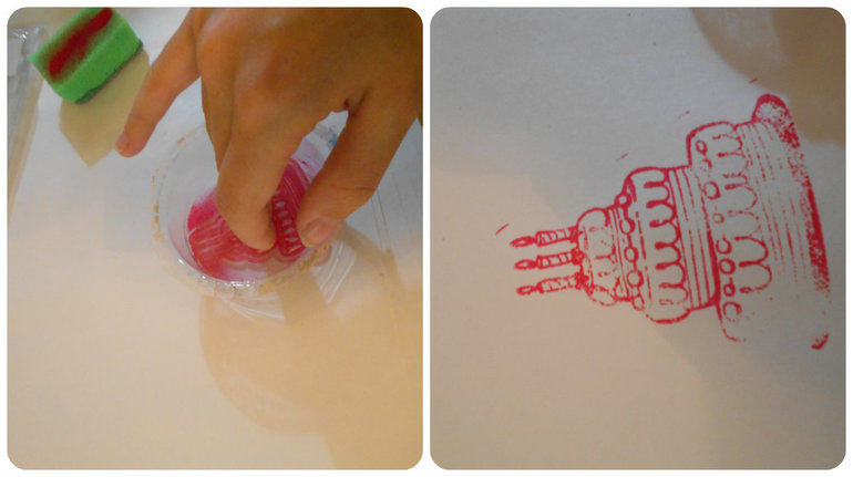 4. обычная губка для мытья посуды и акриловая краска нужного цвета (можно конечно специальную тушь для печатей или даже раскошелиться на штемпельные подушечки для скрапбукинга, но как говорится довольствовались тем что дома нашли)