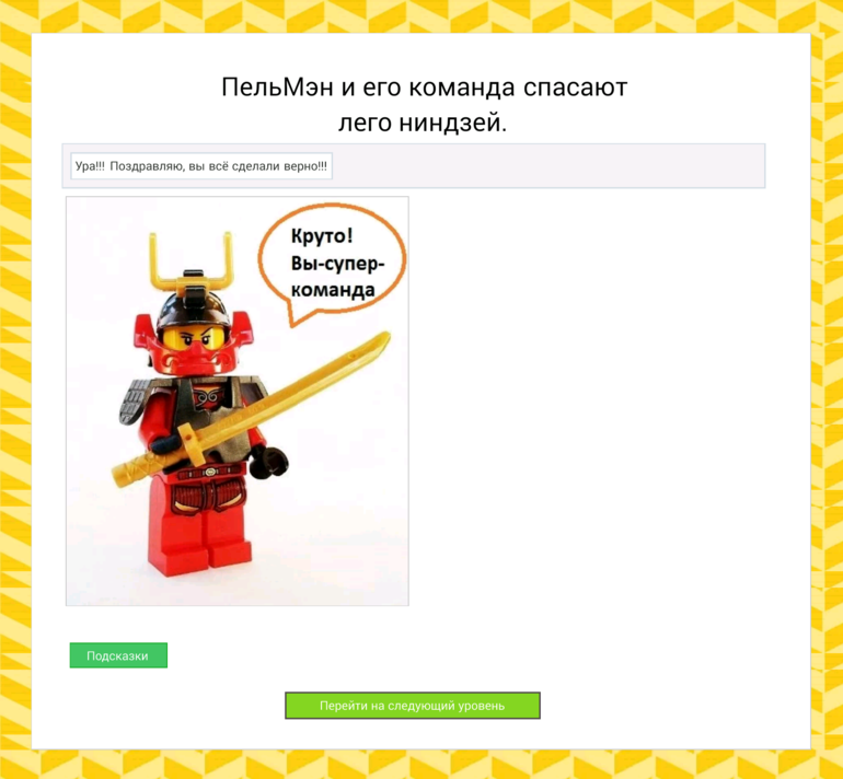 Пятый уровень получился посложнее) Задание было таким...![]()