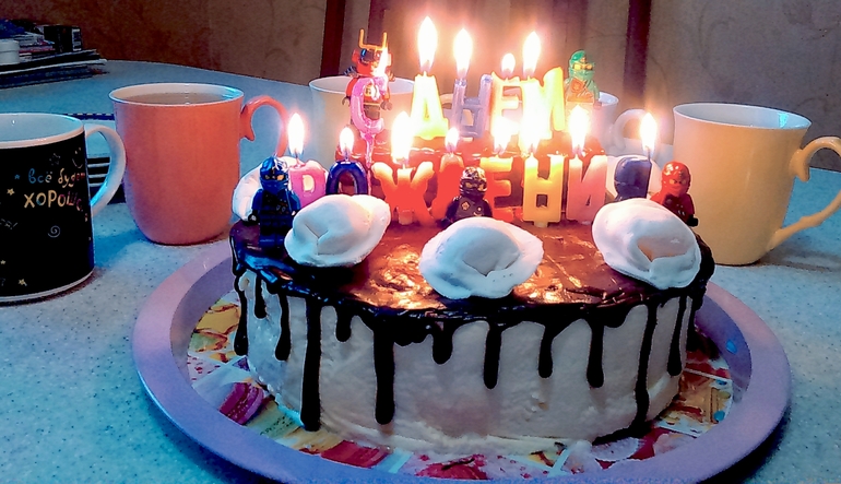 А да, ещё мы пили чай с тортом) А на торте пельмешки из мастики и ниндзя))) Его я тоже сделала сама![]()
