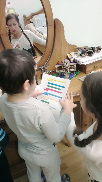 Первый уровень был таким...Я расклеила по всей квартире стикеры с буковками.