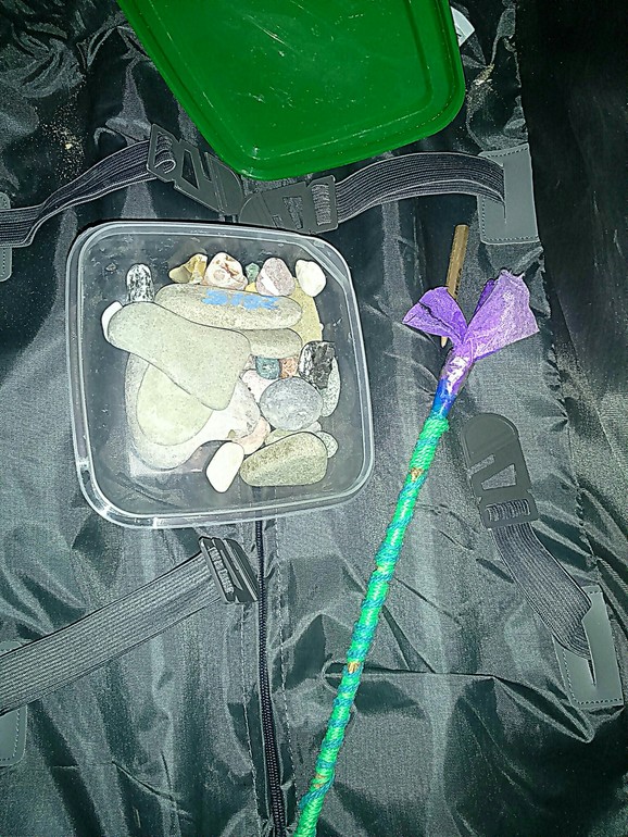 Чемоданов в комнате было два. Егор сначала полез в один и увидел там...хахаха))) гальку и волшебную палочку, которые Ксю привезла летом из лагеря. Я и забыла, что они там валяются, но оказались очень в тему)))) я продолжала издеваться над Егором, что ЭТО его подарок и он сейчас этой палочкой наколдует себе всё, что хочет)))