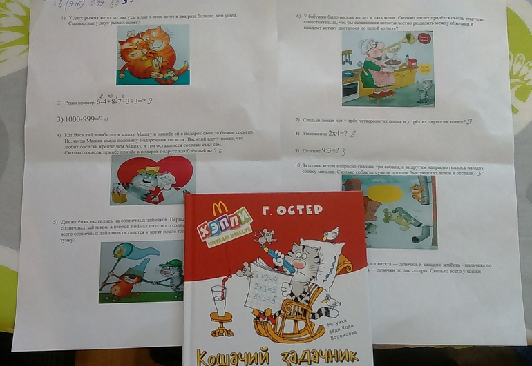 Я зашифровала телефон бабушки. Распечатала задачки с подходящими ответами из задачника Г.Остера (там весёлые и нескучные задачки с симпатичными картинками), разбавила их примерами и положила рядом с телефоном.Начали решать...