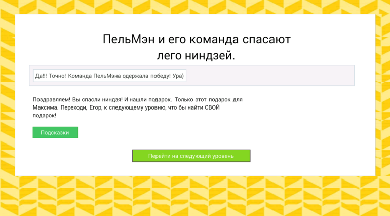 Дальше им нужно было пройти 7 уровней (по количеству лет). И добыть к каждому уровню пароль, что бы перейти на следующий.