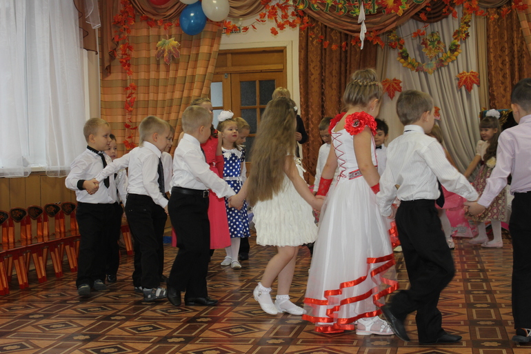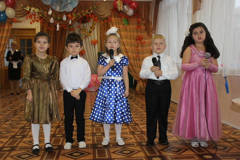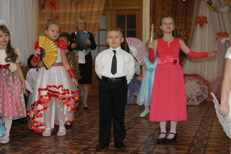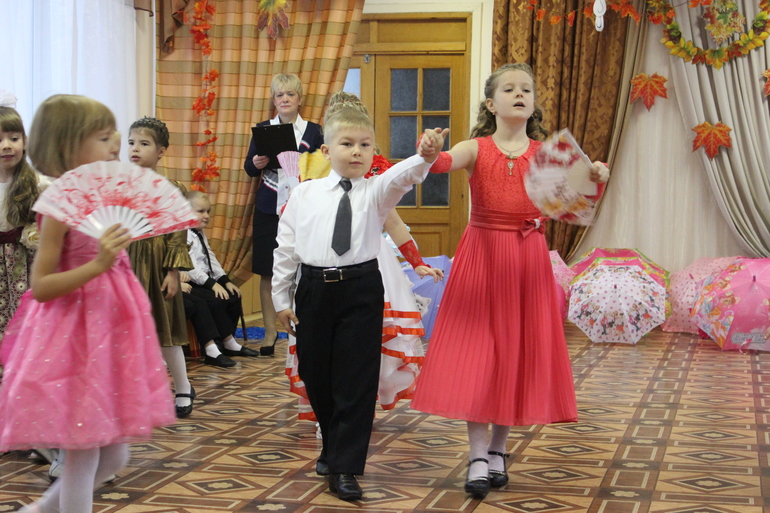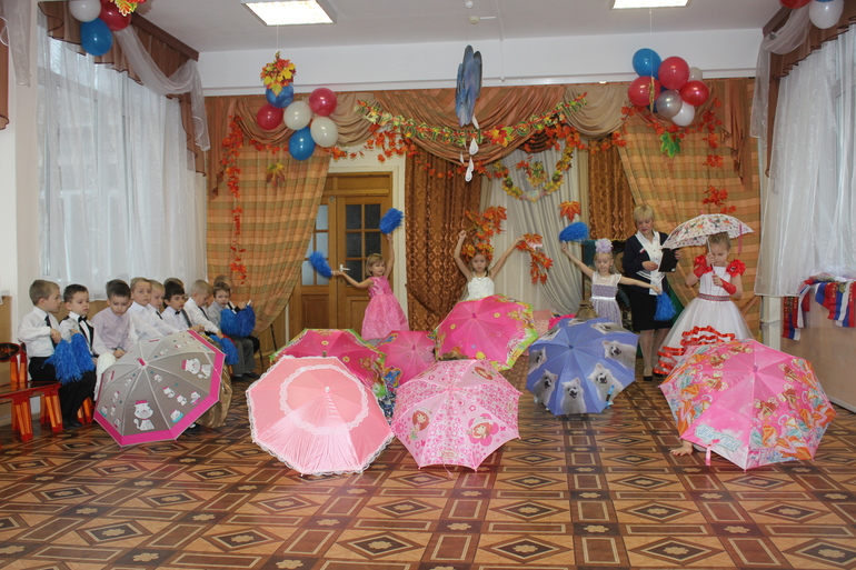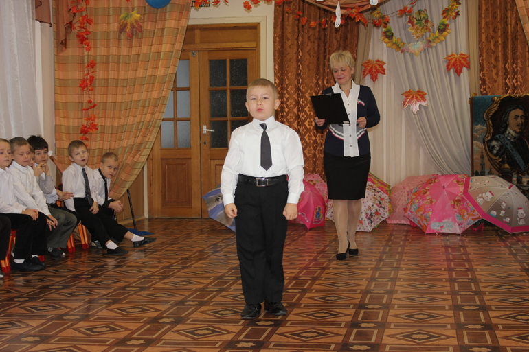 Был шикарный танец осени и девочек с зонтиками..., мальчики присоединились в середине номера...