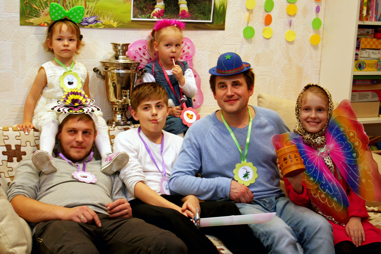В качестве реквизита я смастерила бейджики для героев, а так же нашла крылья, усы ...
